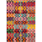This vibrant geometric rug features a bold interplay of color and shape, bringing energy and modern flair to any space.