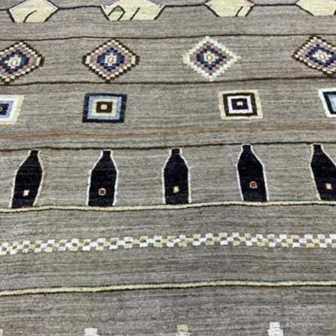 A tribal-inspired design featuring intricate bottle motifs, rich textures, and earthy tones. Stylish and durable, it adds warmth and character to your space.