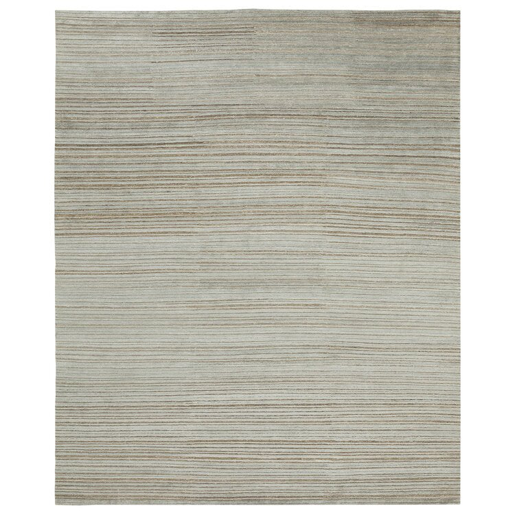 Light blue area rug with a subtle shifting horizontal line pattern.