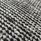 Hand-loomed in India from 100% wool, this rug features an intricate linear design woven in with a palette of cool blue and cream tones. The natural texture and calming colors create a peaceful atmosphere, making it a beautiful and timeless addition to any room.