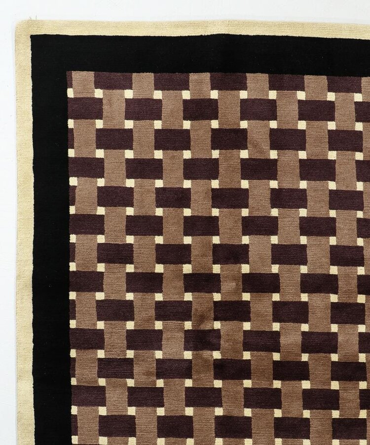 Large Modernist Tibetan Rug with a contrasting basket weave pattern and dark border. Nepal,