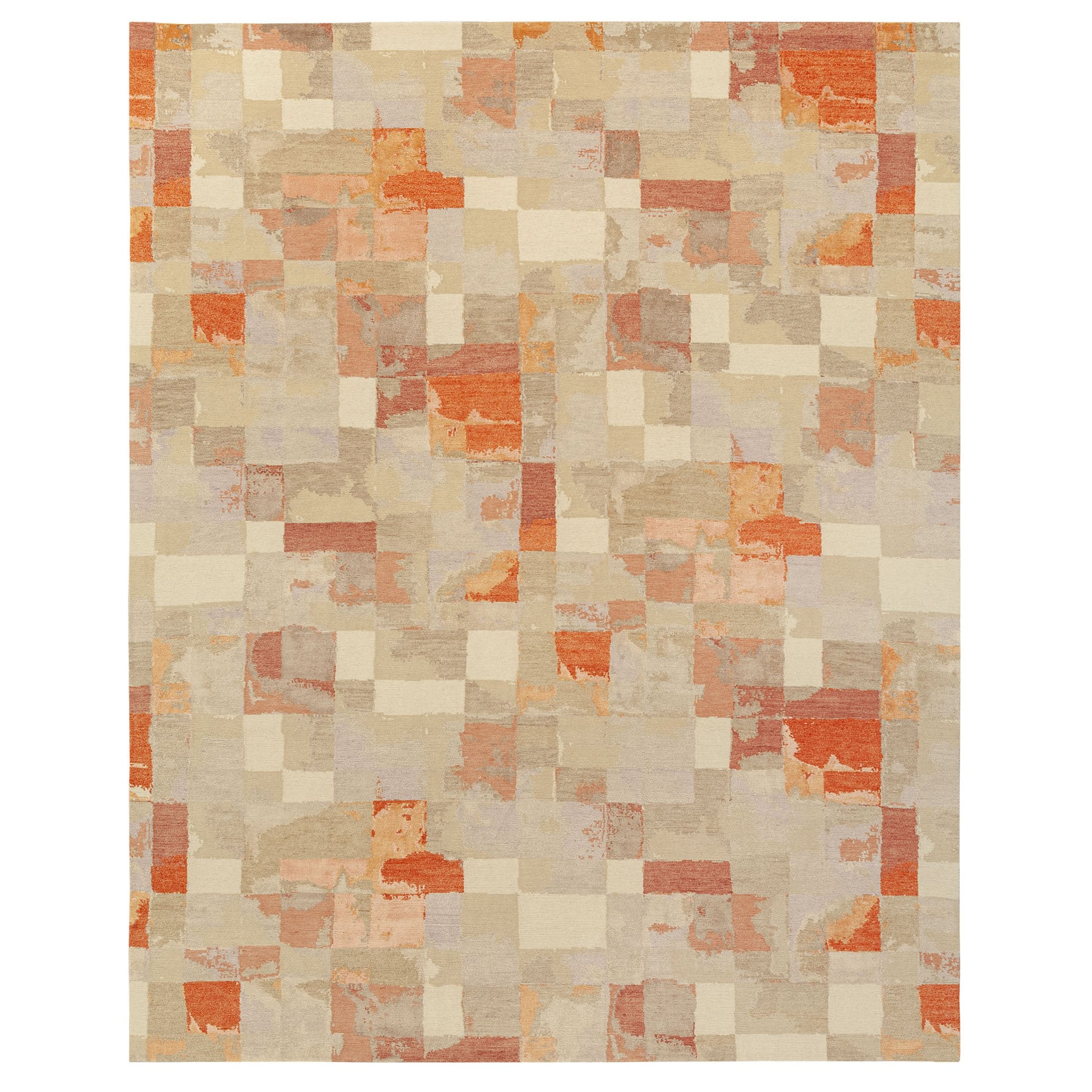 Gridlike neutral grays and browns of this area rug elude an earthy feel. The warm orange tones add energy to the design, making it a stunning centerpiece in any room.