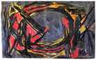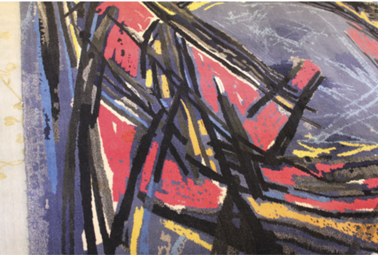 Designed by artist Virgil Cantini and hand-knotted by Ecuadoran weavers circa 1969. This abstract “Bird in Flight" area rug is one of a kind and 100% wool.