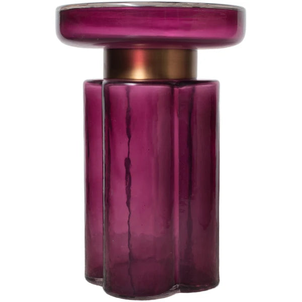 A striking accent table with a gem-like allure, this piece brings sculpture to your interior. Its versatile size pairs well with a sofa or lounge chair, providing a convenient surface for drinks or books, while the richly colored glass casts beautiful light and shadow throughout the room.
