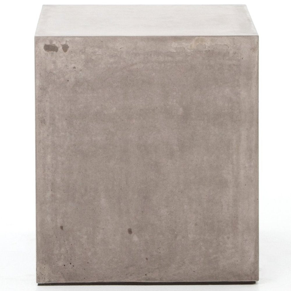 Industrial materials in smoothly refined shapes. Dark grey concrete forms a Parsons-style side table. Made for indoor or outdoor spaces—cover or store indoors during inclement weather and when not in use.