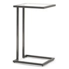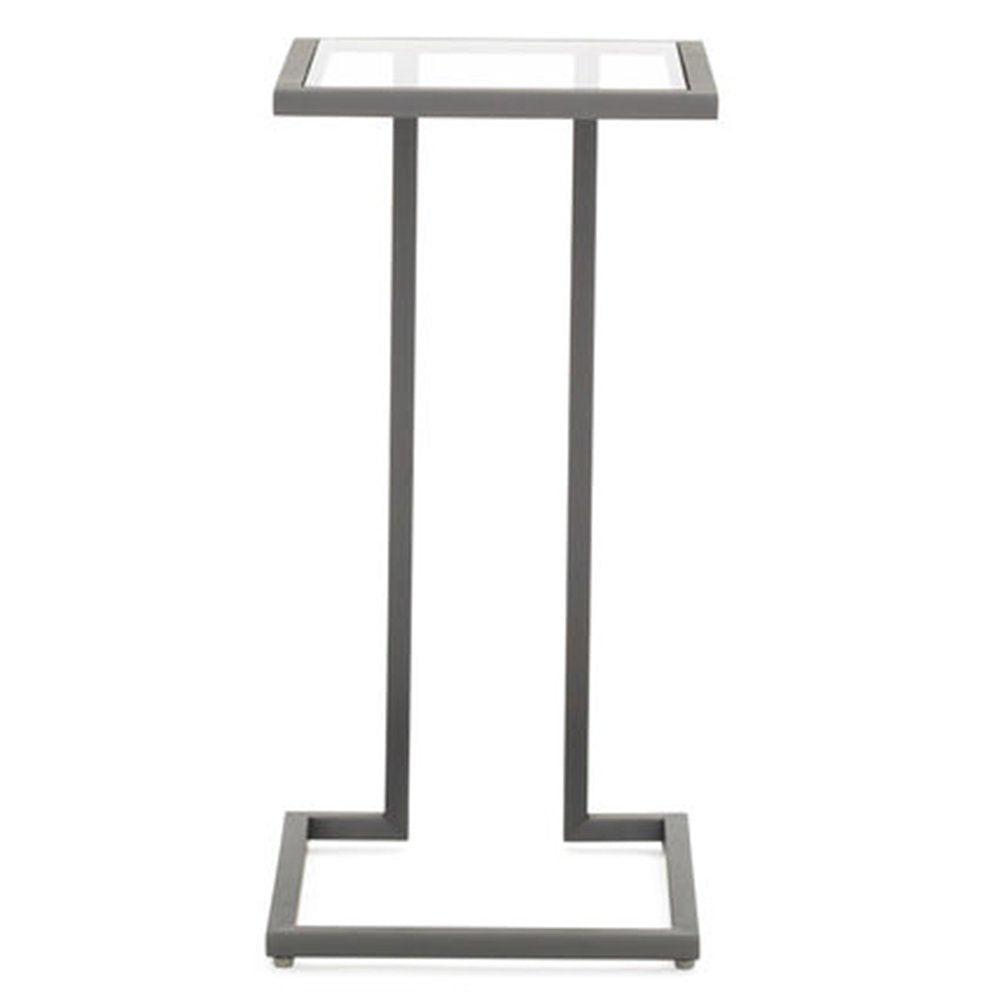 This easy and elegant answer to where to put your drink when sitting on a sectional or sofa: our C-shaped accent table with a clear glass top and clean-lined metal frame. Note that the frame features a subtle, vintage-inspired detail: It has rubbed edges that add a lightly aged patina to its modern industrial look. The table is designed to be lightweight enough to move wherever needed. Available in Polished Stainless Steel, Antique Brass, and Pewter finishes.