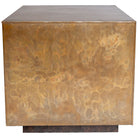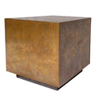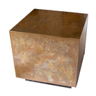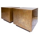 A beautiful pair of Italian copper-clad 24” square cube sides tables with a stunning patina and modern plinth base. Clean lines and a sleek profile give these cube side tables an impressive contemporary look. Sold as a pair.