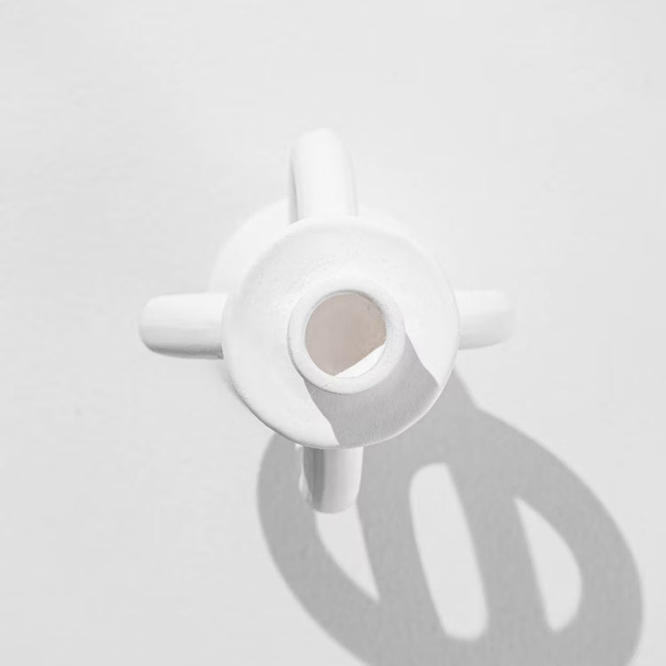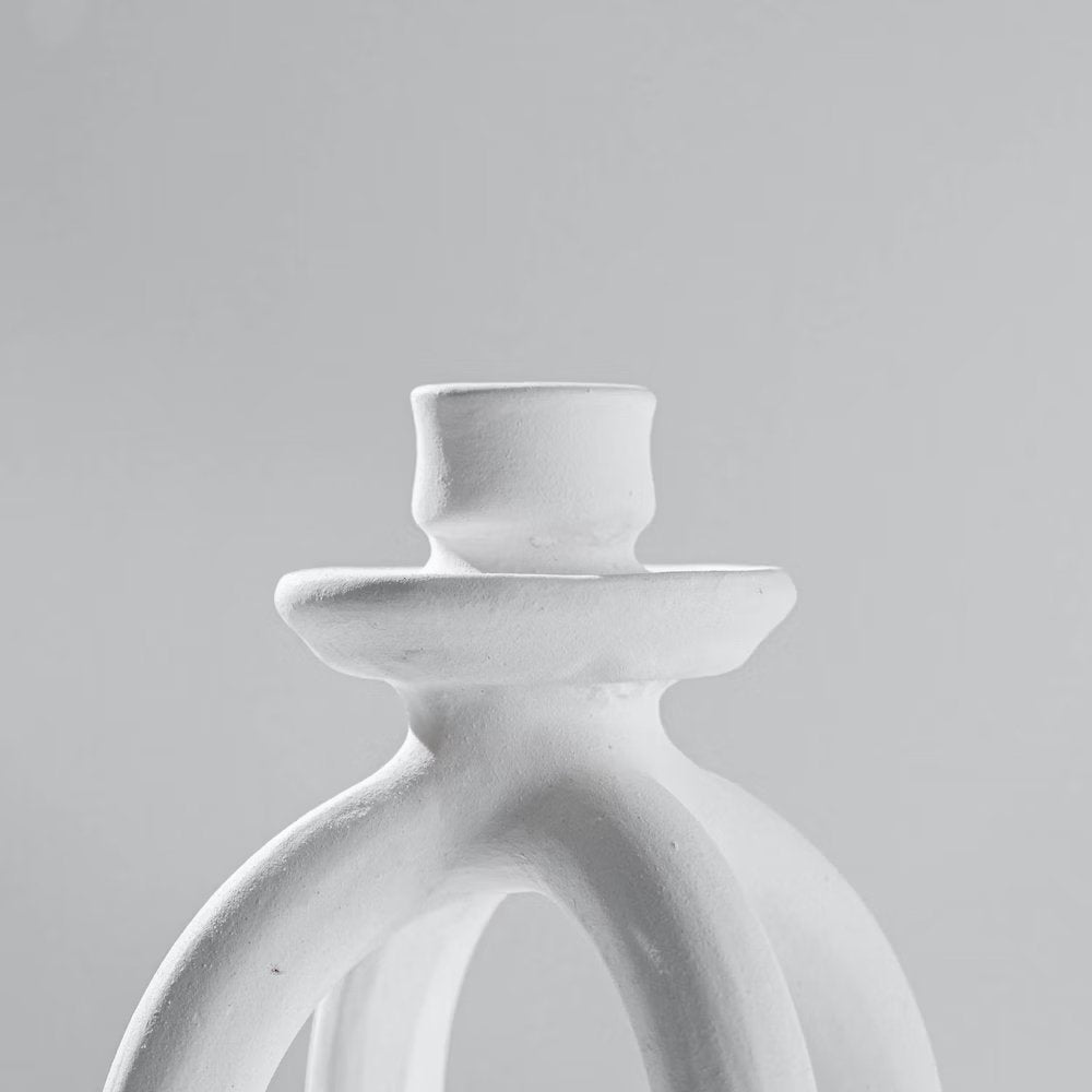 Crisp, clean Moroccan vibes. The matte chalk-white finish adds a soft yet textured look to these sculptural ceramic candle sticks.