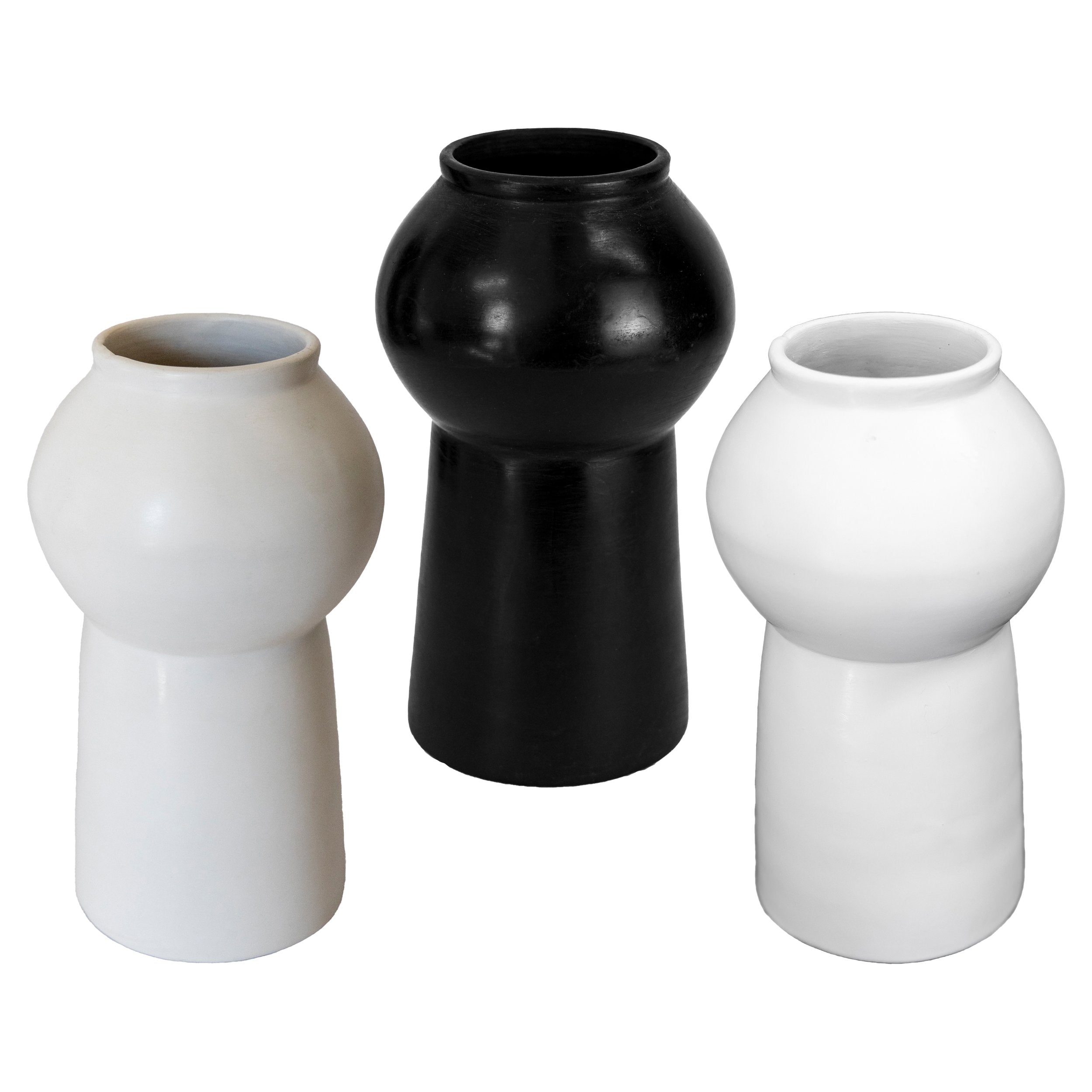 Handcrafted with skill by artisans in Northern Africa, these Moroccan vases add a touch of elegance and wonder. Each piece is hand molded and fired finished with a fresh matte white, ivory, or black glaze that enhances the unique sculptural silhouette. Perfect to be displayed together in endless combinations.
