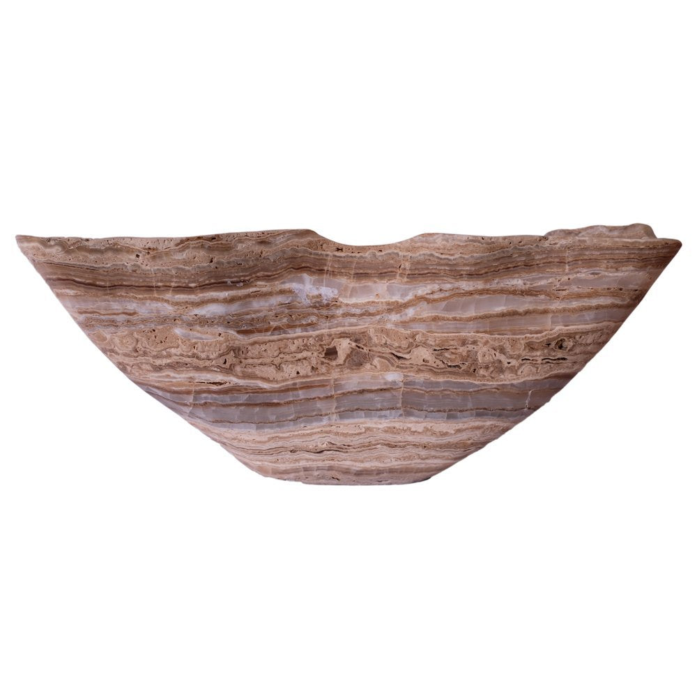 Polished onyx bowl with dark butterscotch and brown veining.
