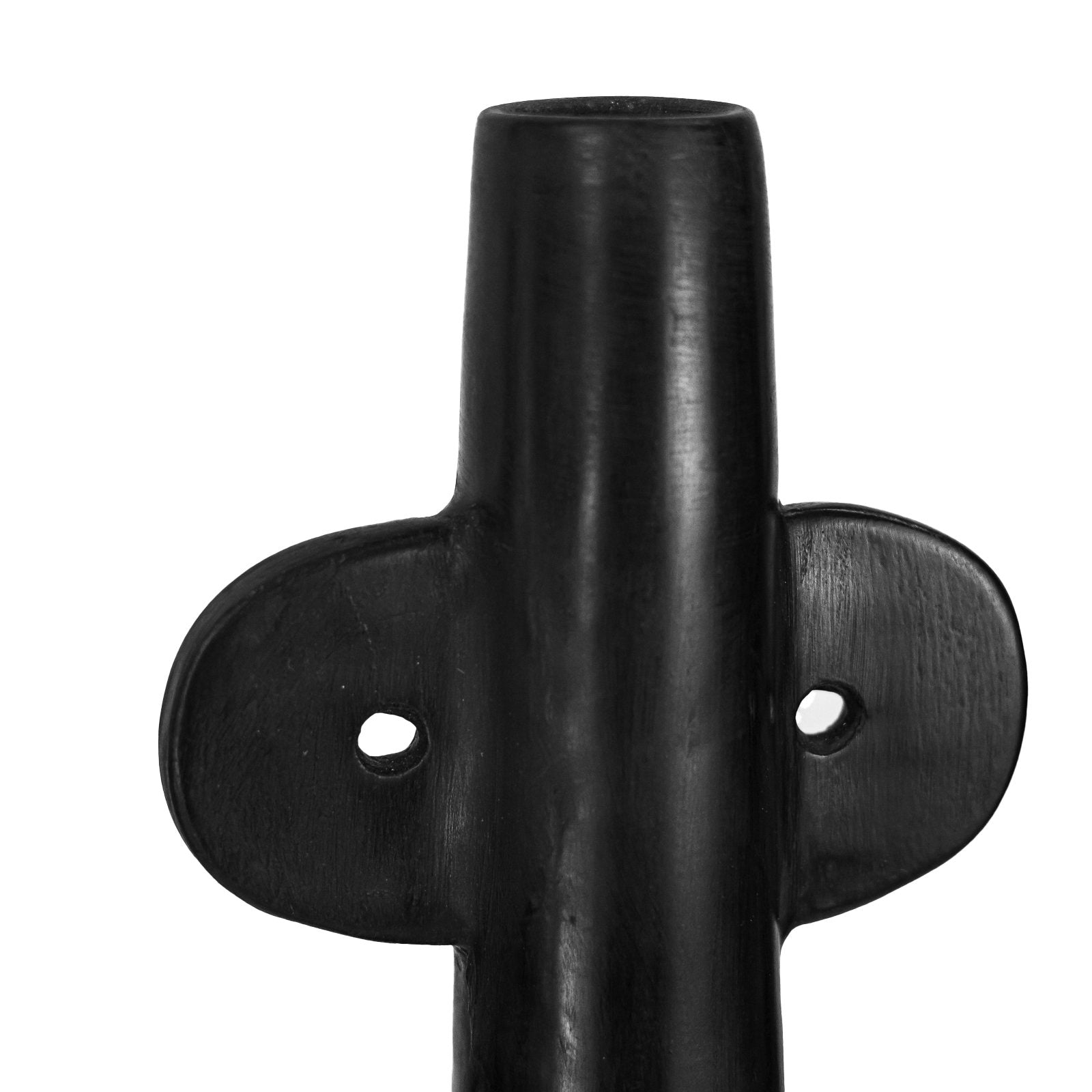 Handcrafted with skill by artisans in Northern Africa, this Moroccan vase adds a touch of elegance and wonder. This vase is hand molded and fired, finished with a fresh black glaze that enhances the unique sculptural silhouette. Perfect to be displayed in endless combinations.
