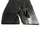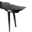 Impressive teak root console table constructed of a solid slab. The black lacquer finish that carries from the top to the legs adds a modern edge to the organic form. Stunning from all angles.