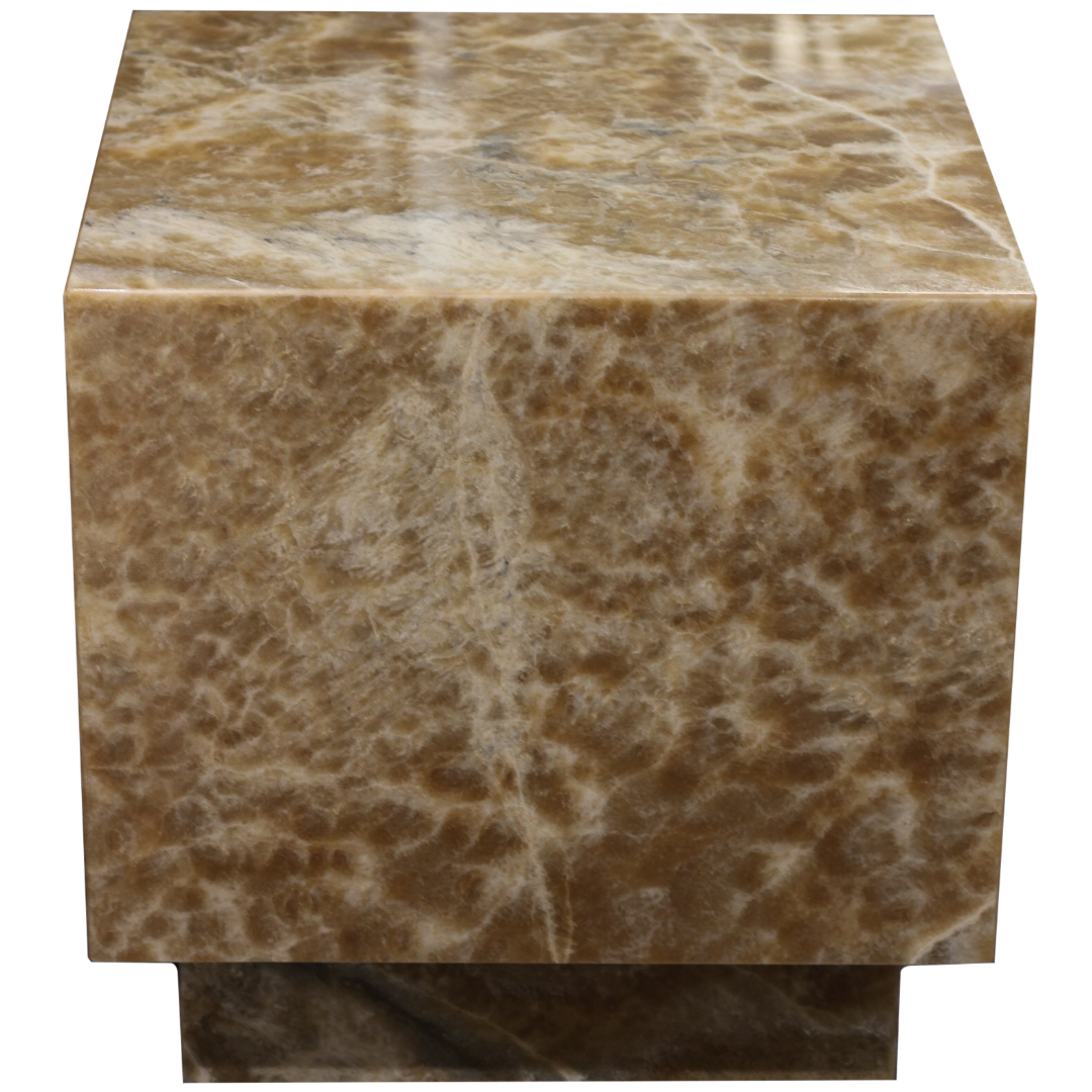 Crafted from rich brown onyx, this square side table showcases unique veining and warm, earthy tones. Perfect as a statement piece or a functional accent in any interior.