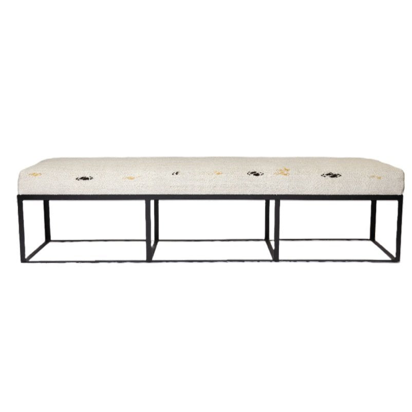 The Canal Natural Hemp Bench features a sleek metal frame upholstered in a vintage hemp fabric. Add seating to your living space, or complete your bedroom look with a bench at the foot of your bed.