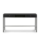 A study in balance and restraint. Slim lines of blackened iron frame this minimal desk, while bronze-finished hardware lends a subtle glint of warmth. Two drawers nest within the structure, offering quiet utility without distraction. Industrial in spirit, refined in execution.