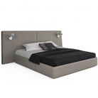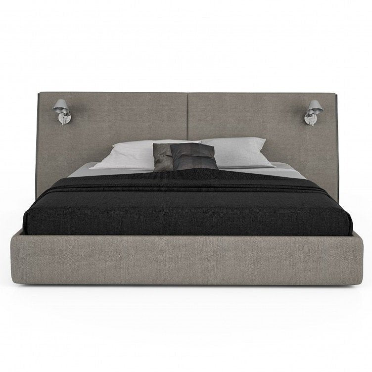Long upholstered headboard with clean modern lines complete with a platform base. Available with or without two Artemide Tolomeo sconces.