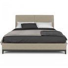 Upholstered bed in a queen or king. Legs and bed contour made of solid birch. Clean lines & classic frame.