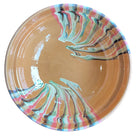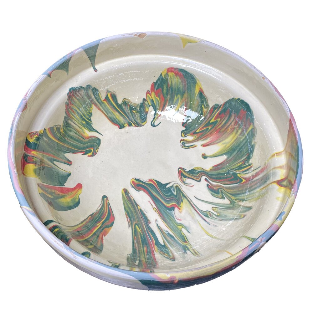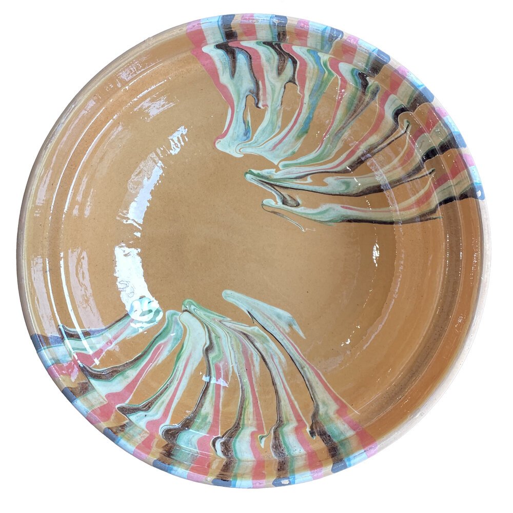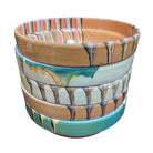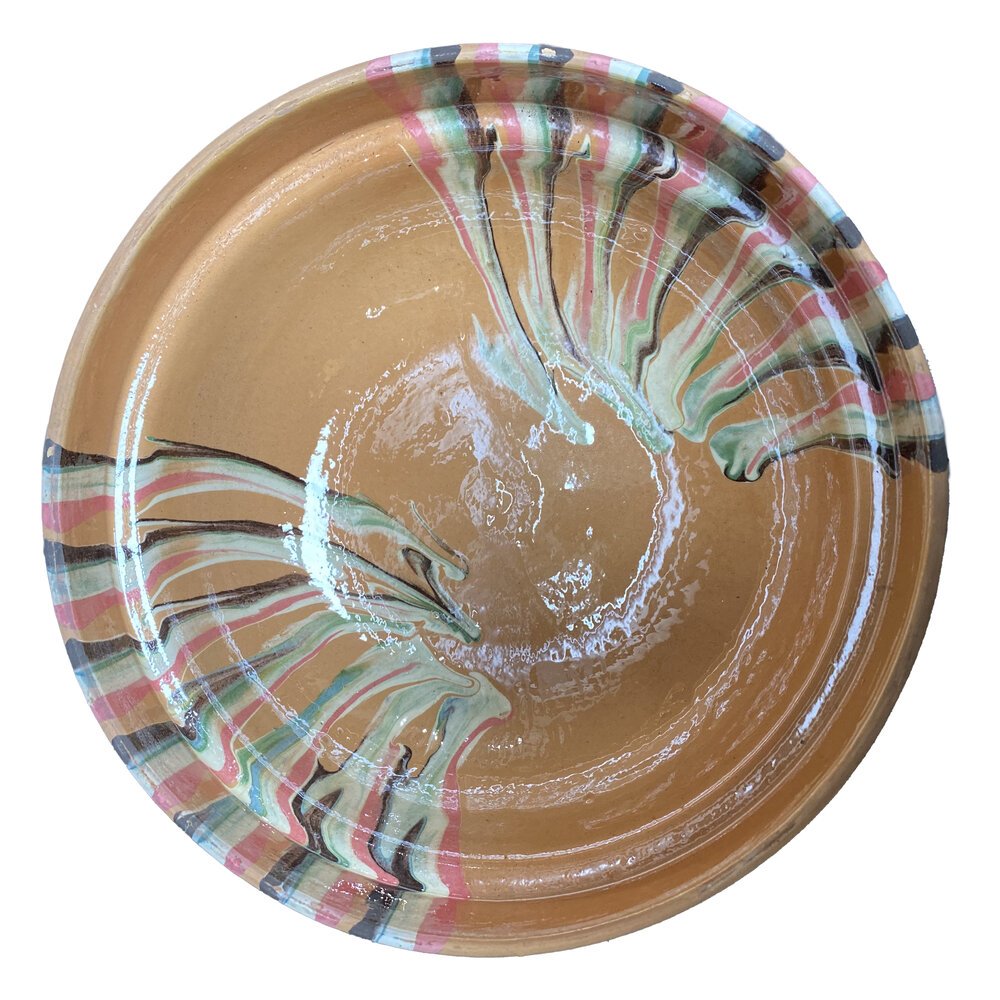 Ceramic bowls with a zig zag of colored glaze originally made in Romania.