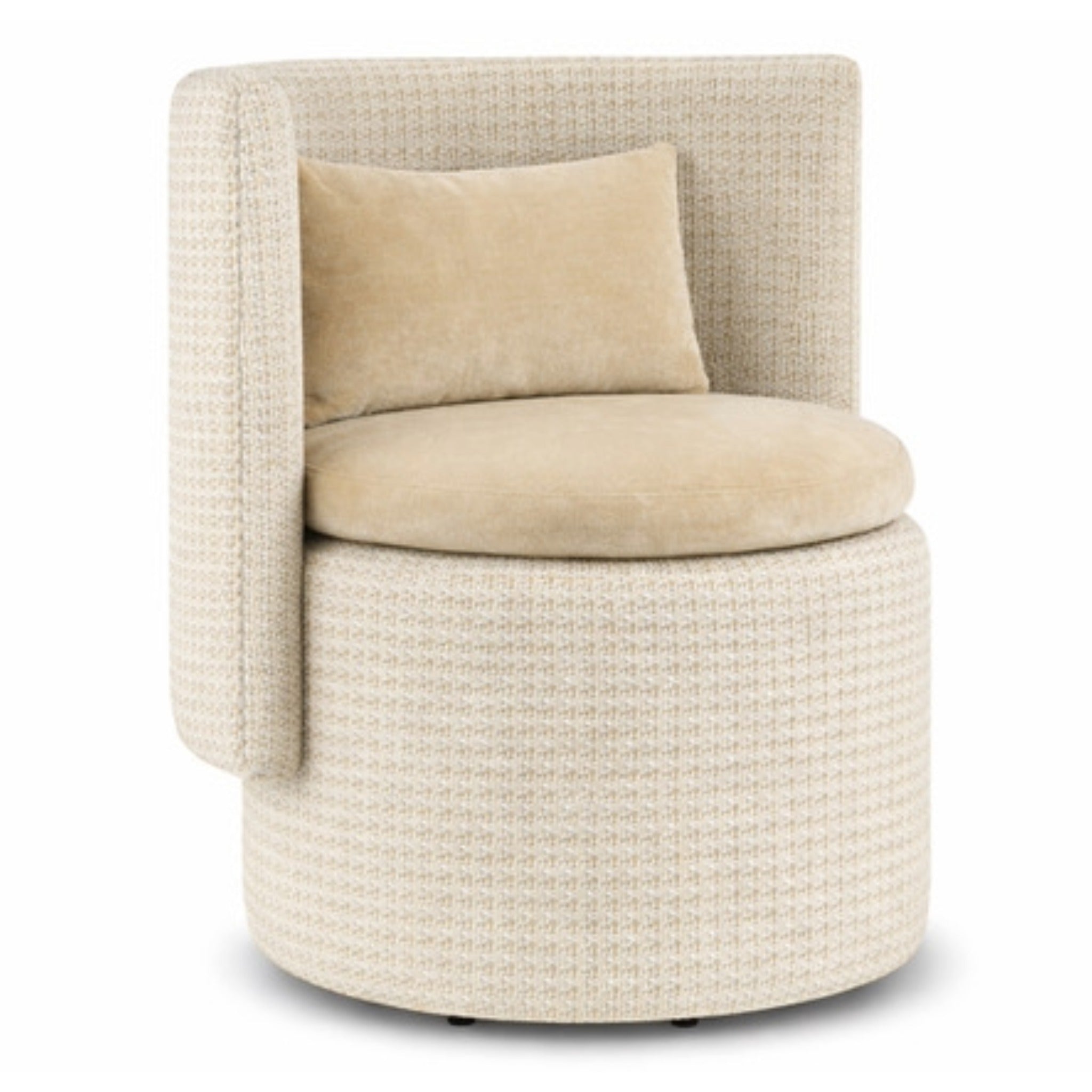 The Belmont Swivel is a modern accent chair that balances whimsy with sophistication. Its sculptural barrel form features a smooth swivel base, offering comfortable lounge seating with a small footprint -making it as practical as it is eye-catching.