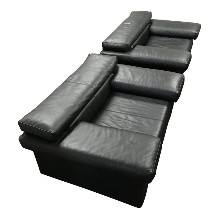 Legendary pair of leather lounge chairs by the famed Italian designer duo Afra & Tobia Scarpa model Erasmus manufactured in Novedrate (Como) North of Milan by the infamous B&B Italia signed circa 1980s
