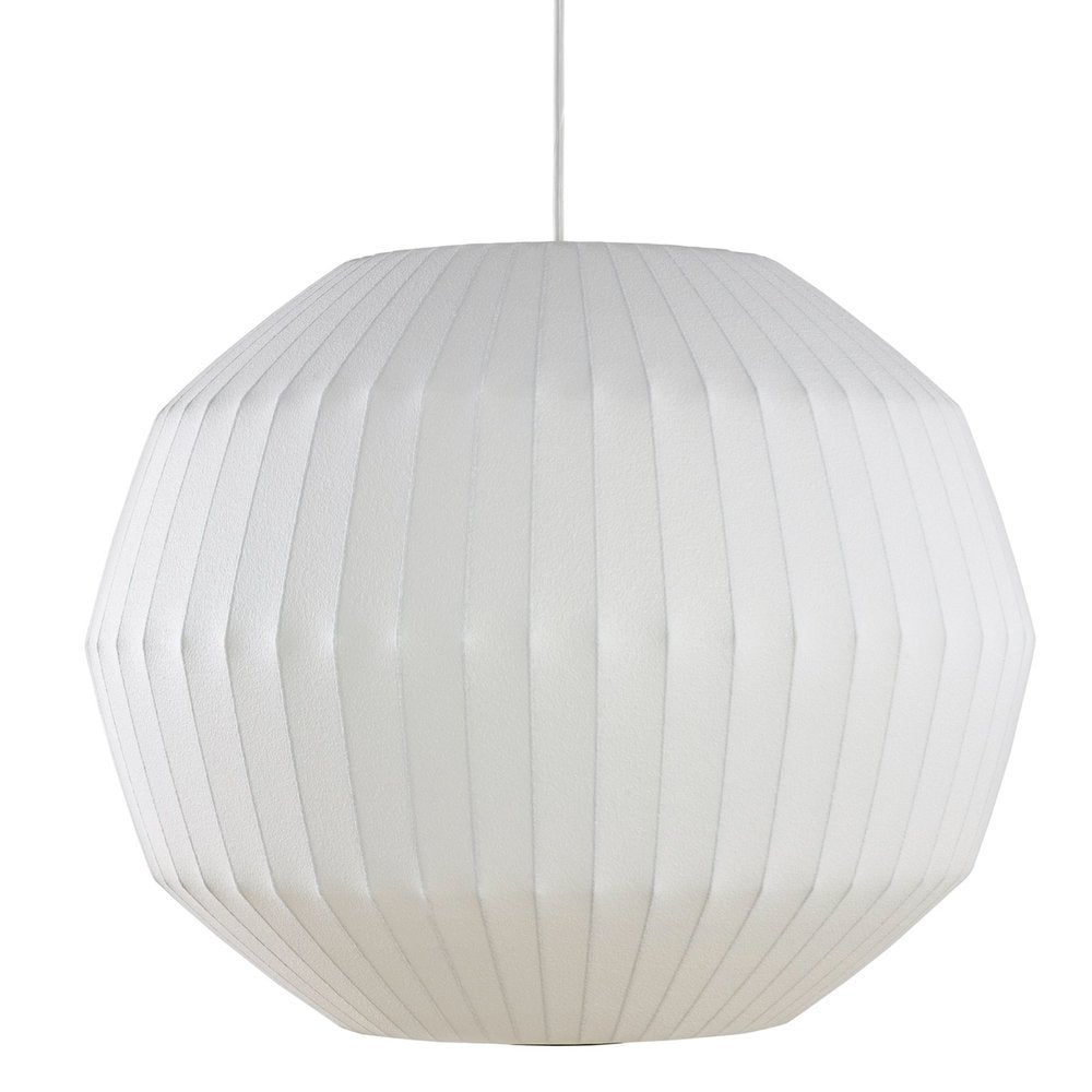 Mixing angles and curves, the Nelson Angled Sphere Bubble Pendant (1952) from Herman Miller plays with shape and geometry. The fixture floats delicately overhead, comes in three sizes, and features nickel-plated mounting hardware. The Sphere Pendant Lamp is produced in collaboration with the George Nelson Foundation. Bulb (not included): LED, CFL, or incandescent; E26 base; 150W. UL Listed.