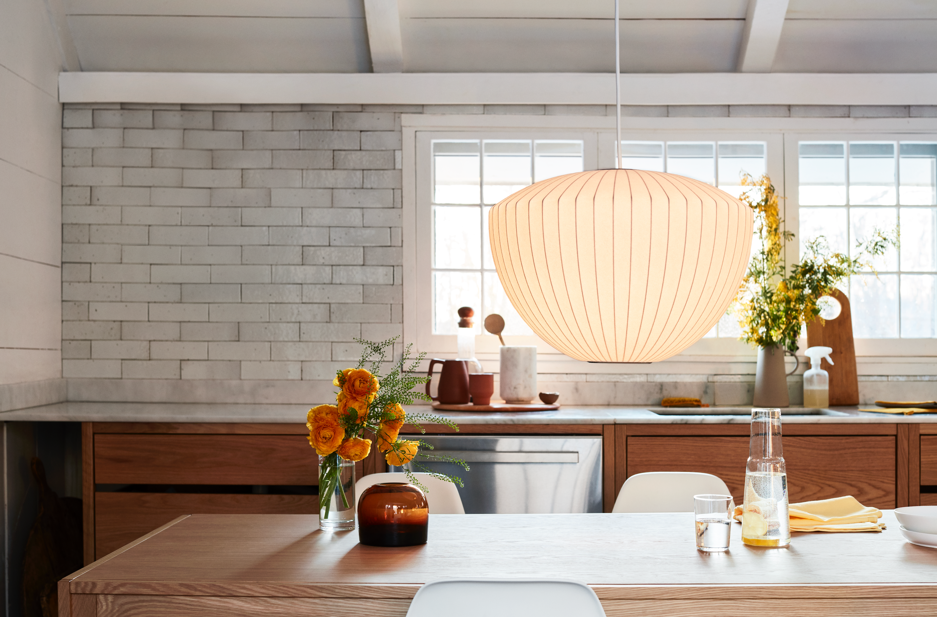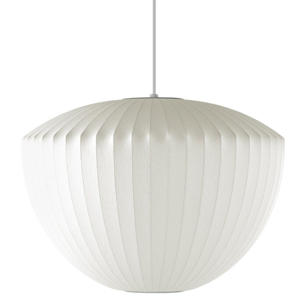 Evoking an apple hanging from a stem, the Nelson Apple Bubble Pendant from Herman Miller plays with shape and geometry. Narrow lines run down the length of its shade, created via a technique George Nelson developed for his Bubble Lamp (1952). Comes with nickel-plated mounting hardware. The Apple Pendant Light is produced in collaboration with the George Nelson Foundation.