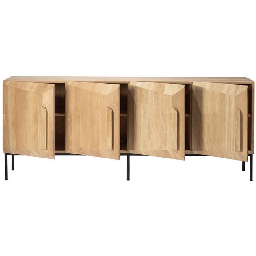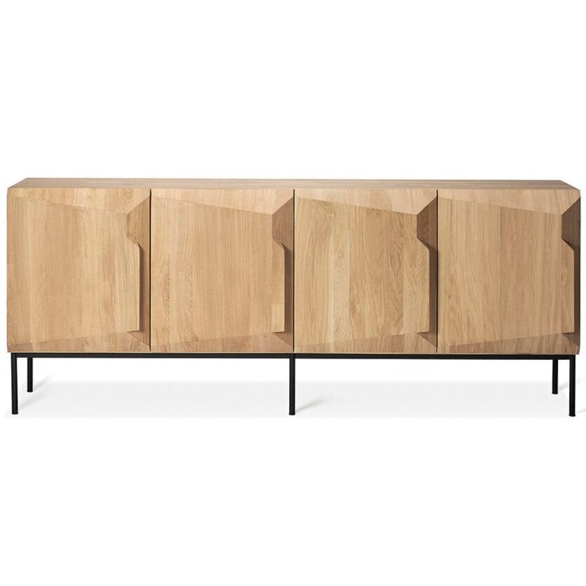 An angular composition forms the heart of a design that aims to distance itself from traditional static and immobile surfaces. A unique sense of volume is created, altering your perception of the sideboard as you walk by.