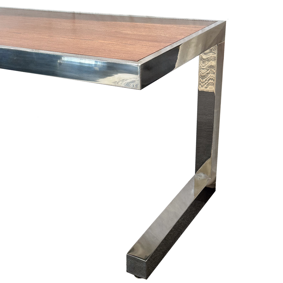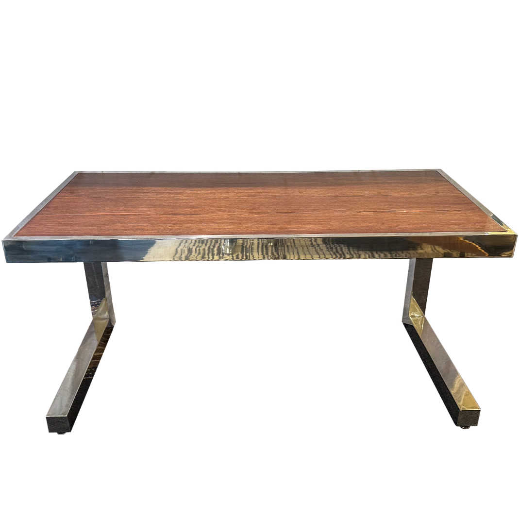 Beautiful executive desk designed by J Wade Beam circa 1970. The rosewood top floats with a clean, geometric chrome base.