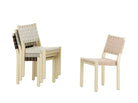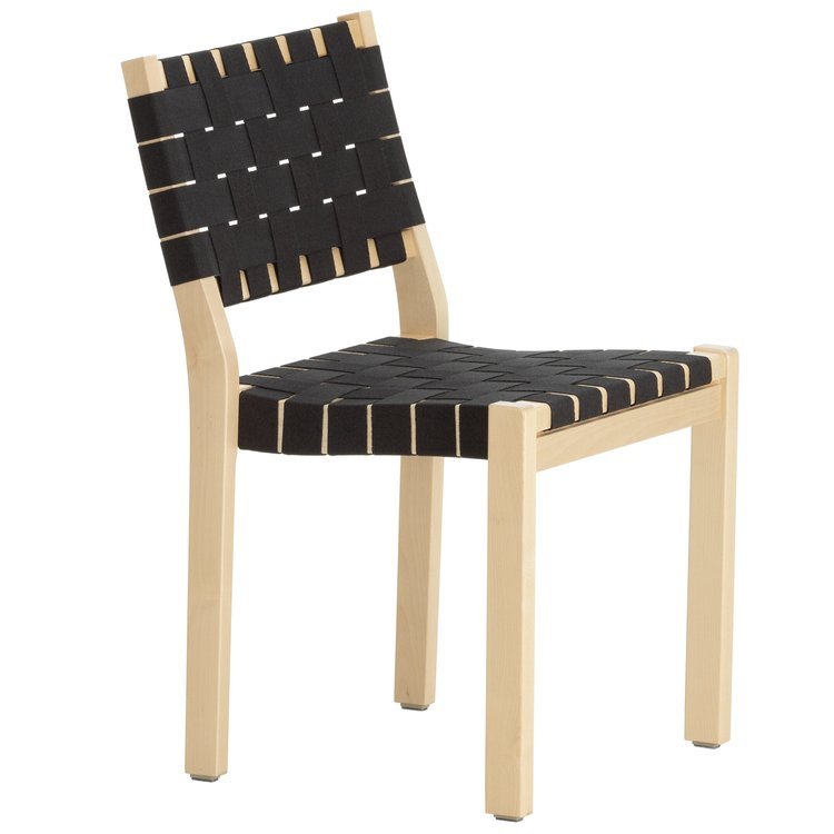 Chair 611 combines a solid birch frame with a woven fabric seat and backrest. Designed to offer comfort and practicality, the fabric webbing yields to the sitter, making the chair exceptionally comfortable. Chair 611 can be easily reupholstered, which means the chair can have many life cycles. One of Alvar Aalto’s first modern furniture designs, Chair 611, has been in continuous production since its creation. Suitable for almost any environment, Chair 611 stacks up to four chairs.