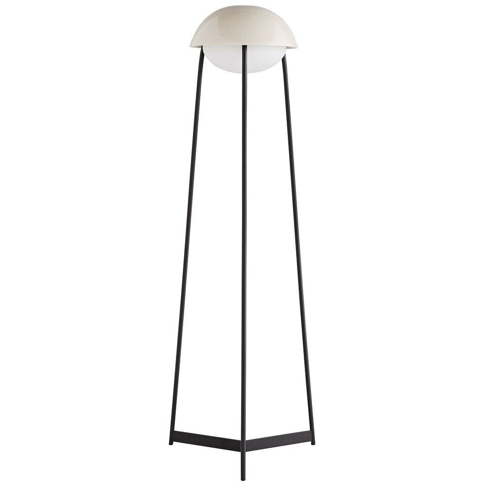 From a frosted glass opal light nestled within an ivory-stained crackled ceramic bowl shade, The Greenwich Floor Lamp casts a warm, diffuse glow to illuminate any room. Perched on a blackened steel tripod base, the lamp effortlessly combines warm, crafted finishes and modern forms to dramatic effect.