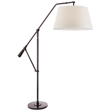 The delicate taper of the hanging percale shade balances this contemporary floor lamp's sleek lines and adjustable angle. Also available as a table lamp.