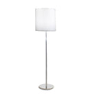 Solid brass construction in a chrome finish, this classic stem floor lamp is juxtaposed with a broad linen shade resulting in an effortlessly chic design., Adjustable height (54”-64”)