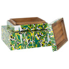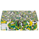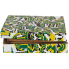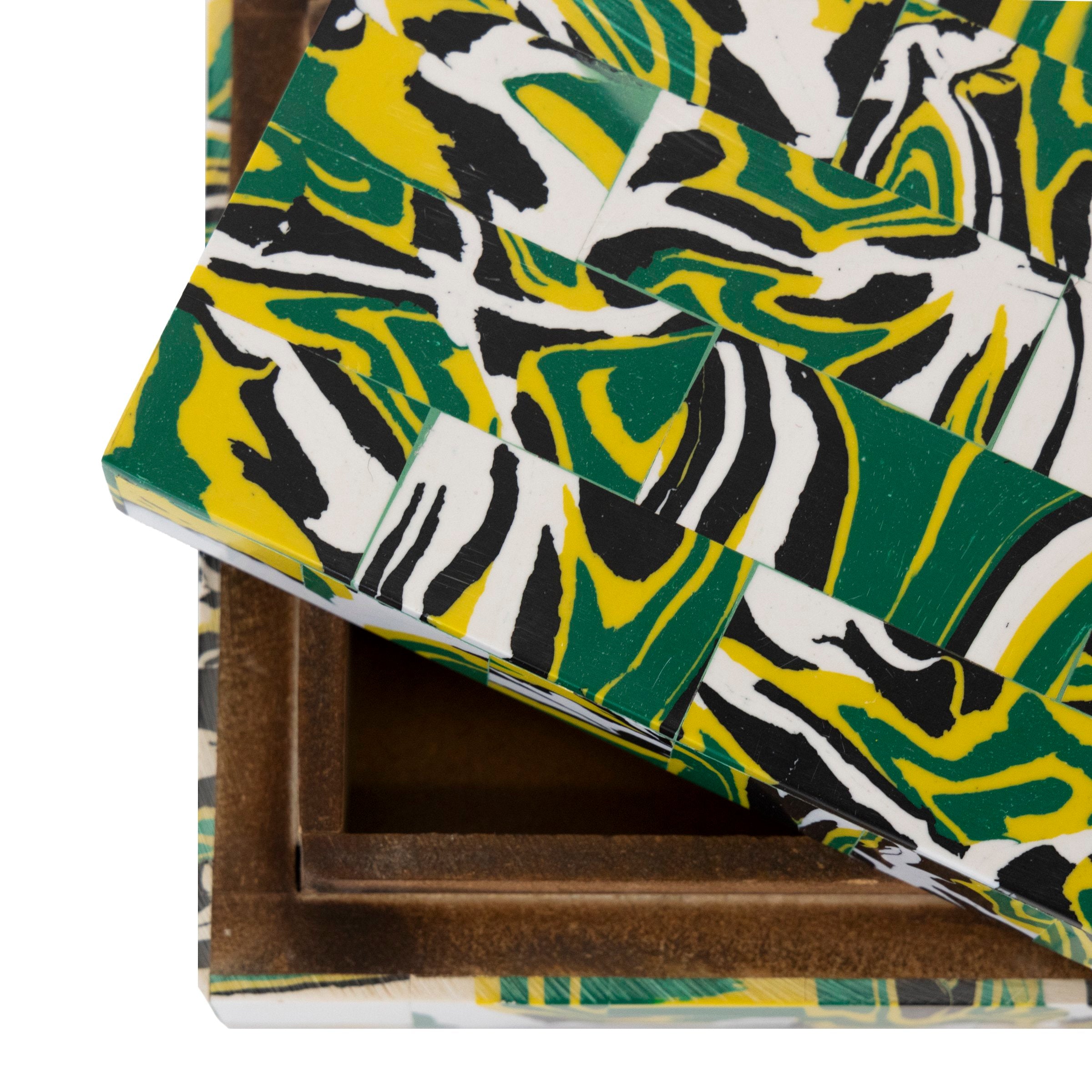 Add a pop of color to any tabletop, shelf, or stack of books! This whimsical marbled-dyed tiled resin box is intricately crafted. A detachable lid makes for excellent small storage of jewelry, keepsakes, or remote controls.