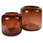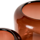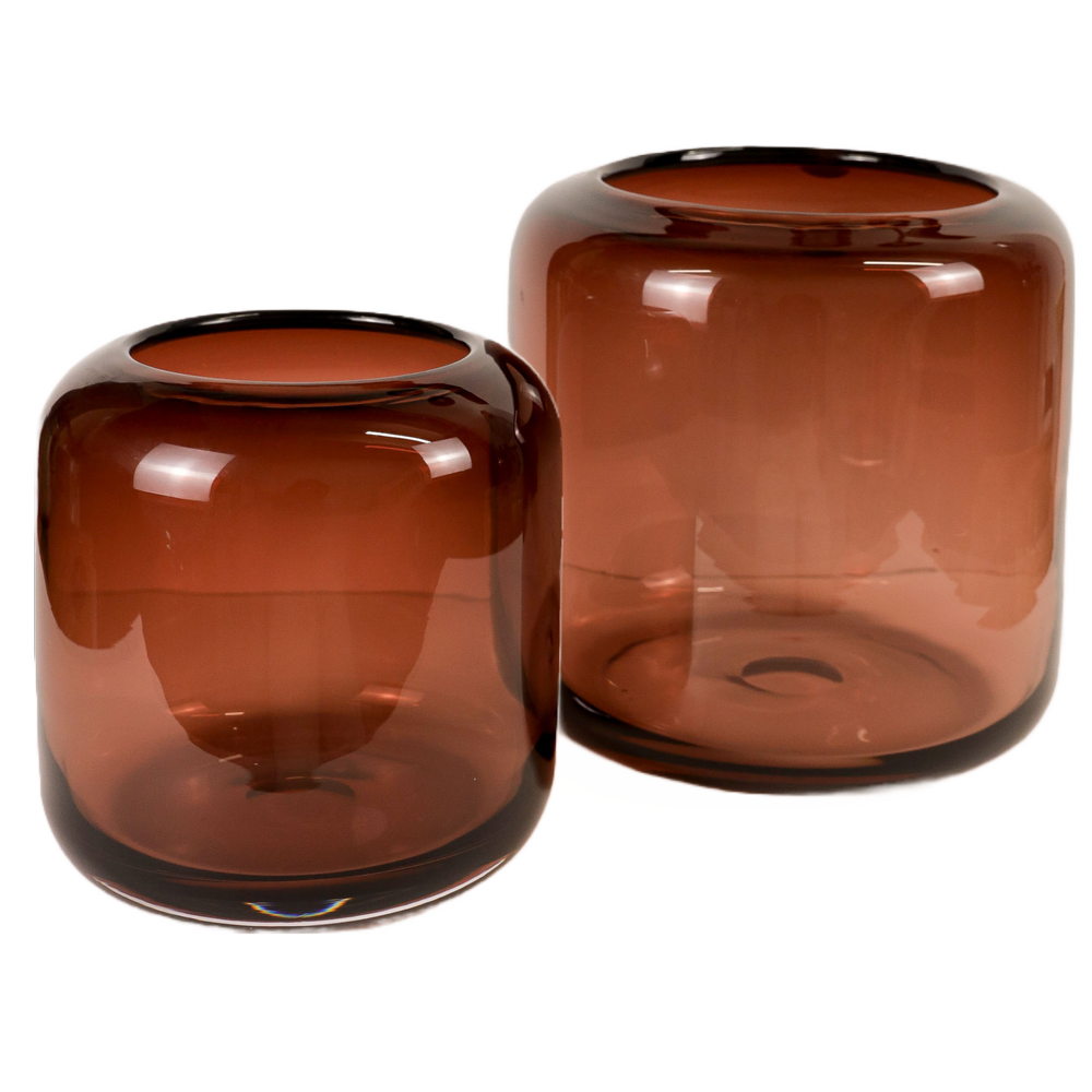 These exclusive glass vases are timeless, hand-blown, and of uncompromising quality. Minimal but present, each vase is crafted in a sculptural silhouette complimenting translucent burgundy color.