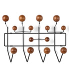 The Eames Hang-It-All, originally released in 1953, exemplifies the Eameses' belief in taking pleasure seriously. Made with a sturdy steel frame and solid wood balls, this colorful coat rack was created using the same technique for simultaneously welding wires that Charles and Ray developed for their low tables and wire chairs.