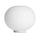 The Glo-Ball Basic Zero Table Lamp from FLOS provides diffused lighting. The diffuser consists of a globe-shaped, externally acid-etched, hand-blown, flashed opaline glass shade and a gray-painted die-cast aluminum threaded ring nut. Additionally, the diffuser is strengthened by aluminum shade supports. The base is made from 30% fiberglass-reinforced injection-molded polyamide. It comes with an on/off switch located on the power cord.