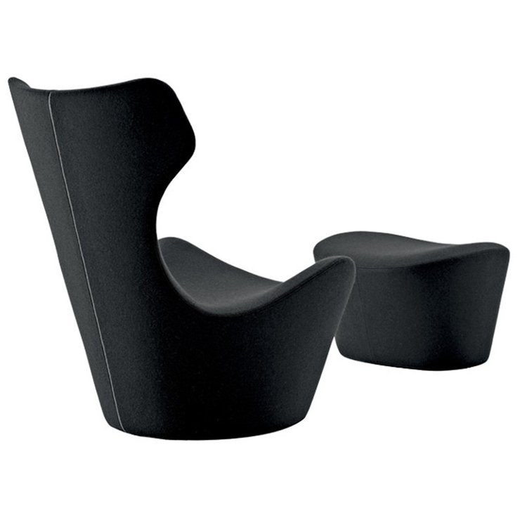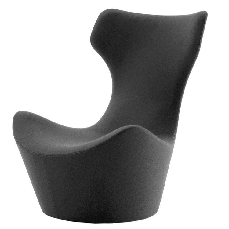 Grande Papilio is an armchair that welcomes you gracefully – with the graceful movement of a butterfly or “Papilio” in Latin. Marked by a strong personality fluidly designed around an upside-down truncated cone, the generously sizeable upper section of the backrest and the welcoming and sinuous shape of the seat ensure the utmost comfort to the user. The backrest, characterized by a visible zipper that allows the cover to be removed, is designed as two wings that envelop and protect the head, emphasizing the feeling of comfort and offering peace and tranquillity. Upholstered in either fabric or leather, Grande Papilio is fitted with a swiveling system and can be complemented by a matching ottoman serving as a footrest for total relaxation.