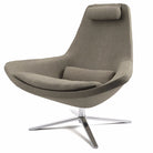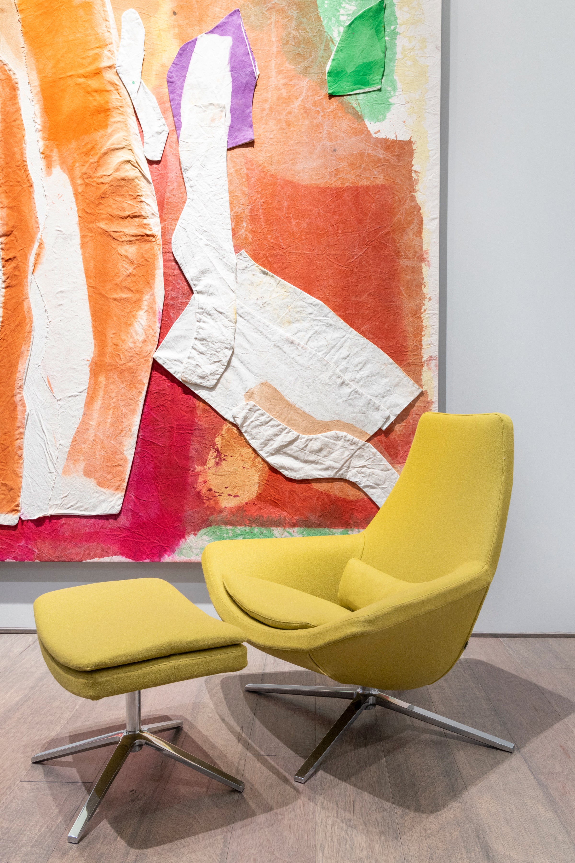 Designed by Jeffrey Bernett, the iconic Metropolitan Chair by B&B Italia is a fully upholstered rotating chair, denoting a flowing design of surfaces with a fully integrated seat cushion. Tailored seams highlight certain crucial areas. The seat’s profile, reminiscent of a smile, invites one to sit down and enjoy a moment’s rest. The hallmark of Metropolitan is the uniform flow of the seat into the armrests, creating a perfect nest for comfort and relaxation. Two bases are available, one with four spokes and one circular, both in bright brushed aluminum. Wide selection of covers available in leather or fabric of your choice.