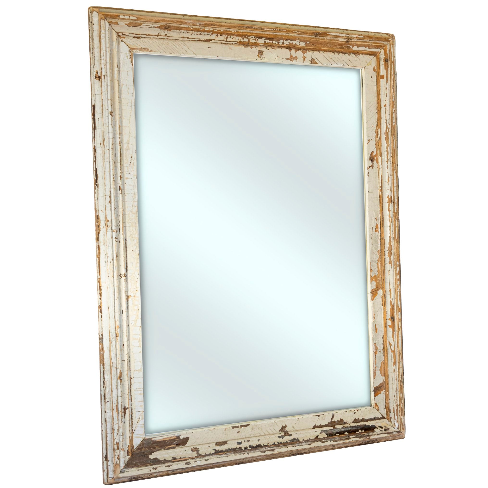 Antique French painted-wood architectural mirror with a beautiful distressed patina.