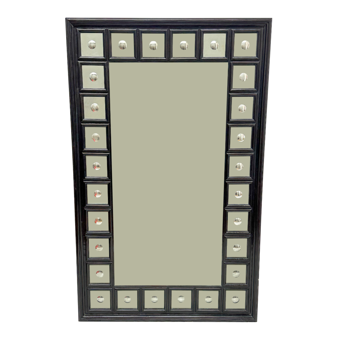 The Cairo Mirror is a striking piece, featuring a pristine reflective surface framed by a unique convex mirrored border. Its dark wood frame adds a touch of warmth and sophistication, making it the perfect blend of classic elegance and modern charm.