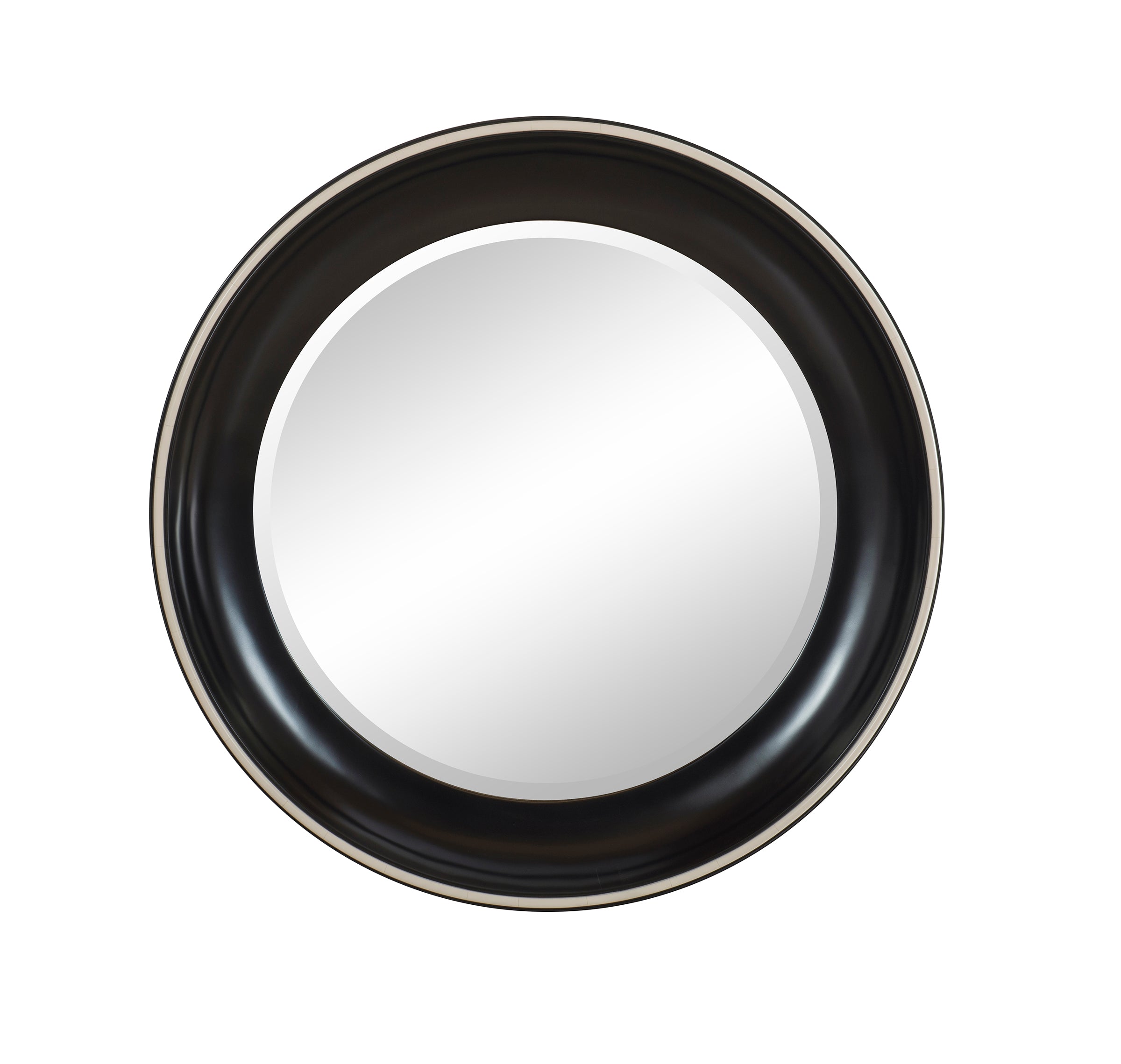 A striking reinterpretation of a Regency-period mirror, finished in ebony lacquer and defined by a deep cove profile with substantial half-bead detailing. Subtle ivory trim adds contrast, while beveled glass and pronounced depth create a bold, architectural presence on the wall.