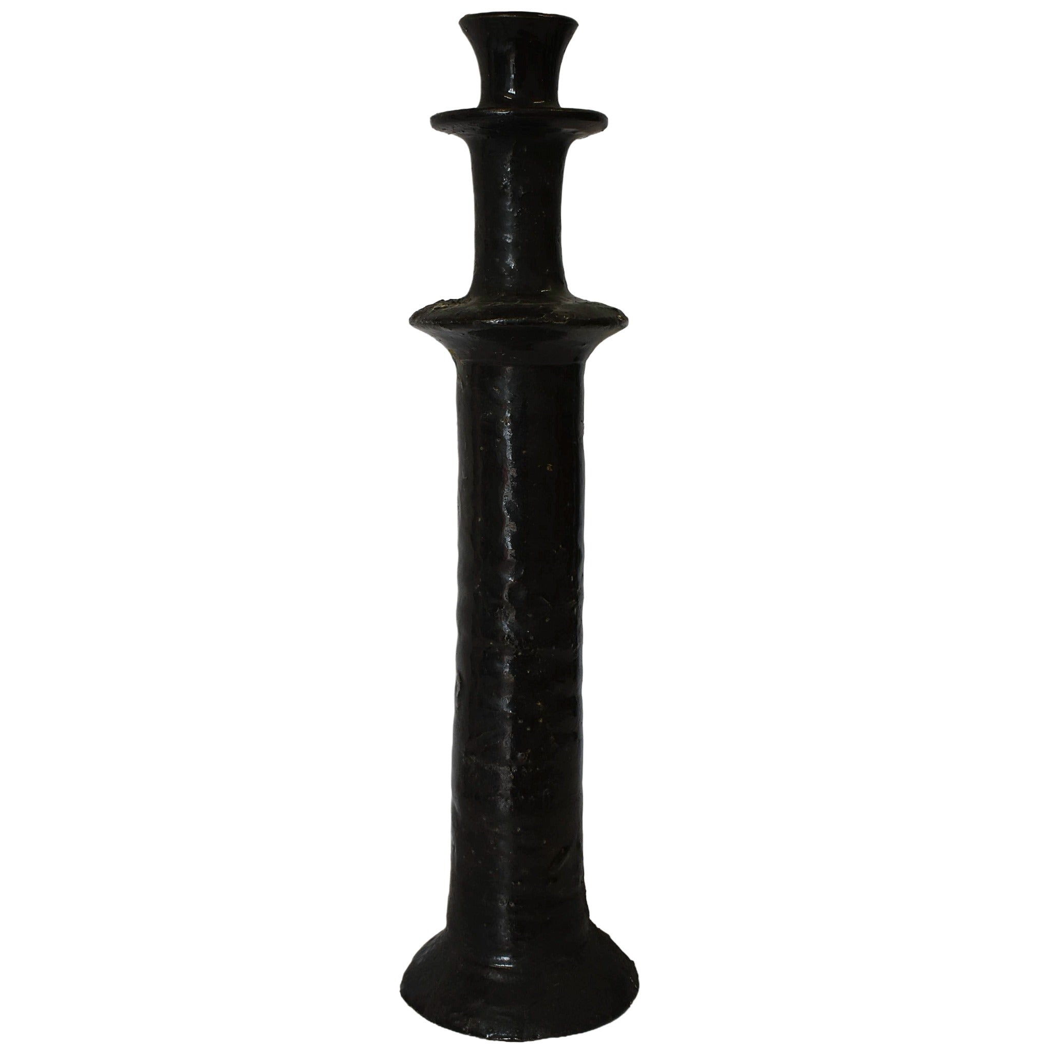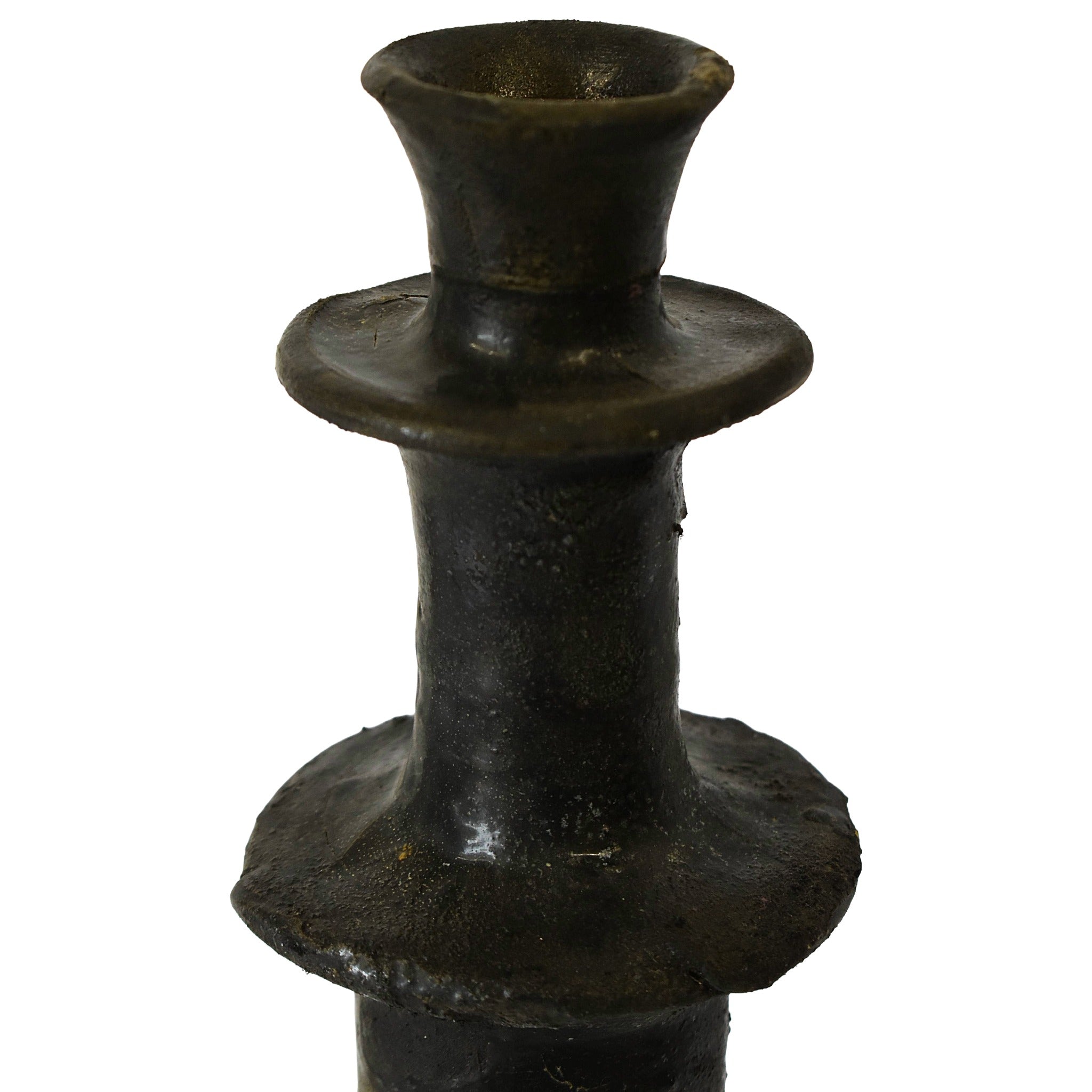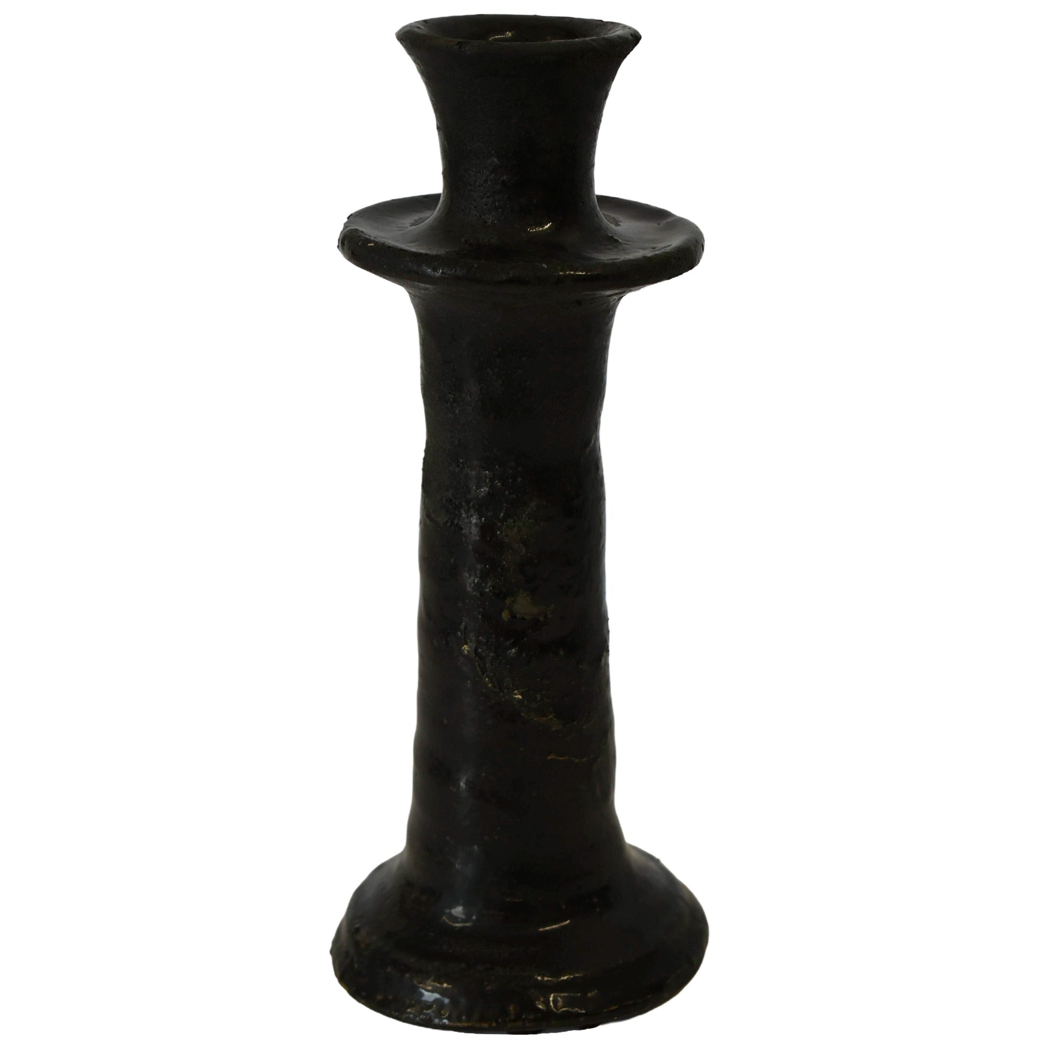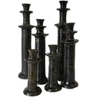 A set of six minimalist black handmade candlesticks crafted in Morocco, each featuring slender stems in a rich black glaze.