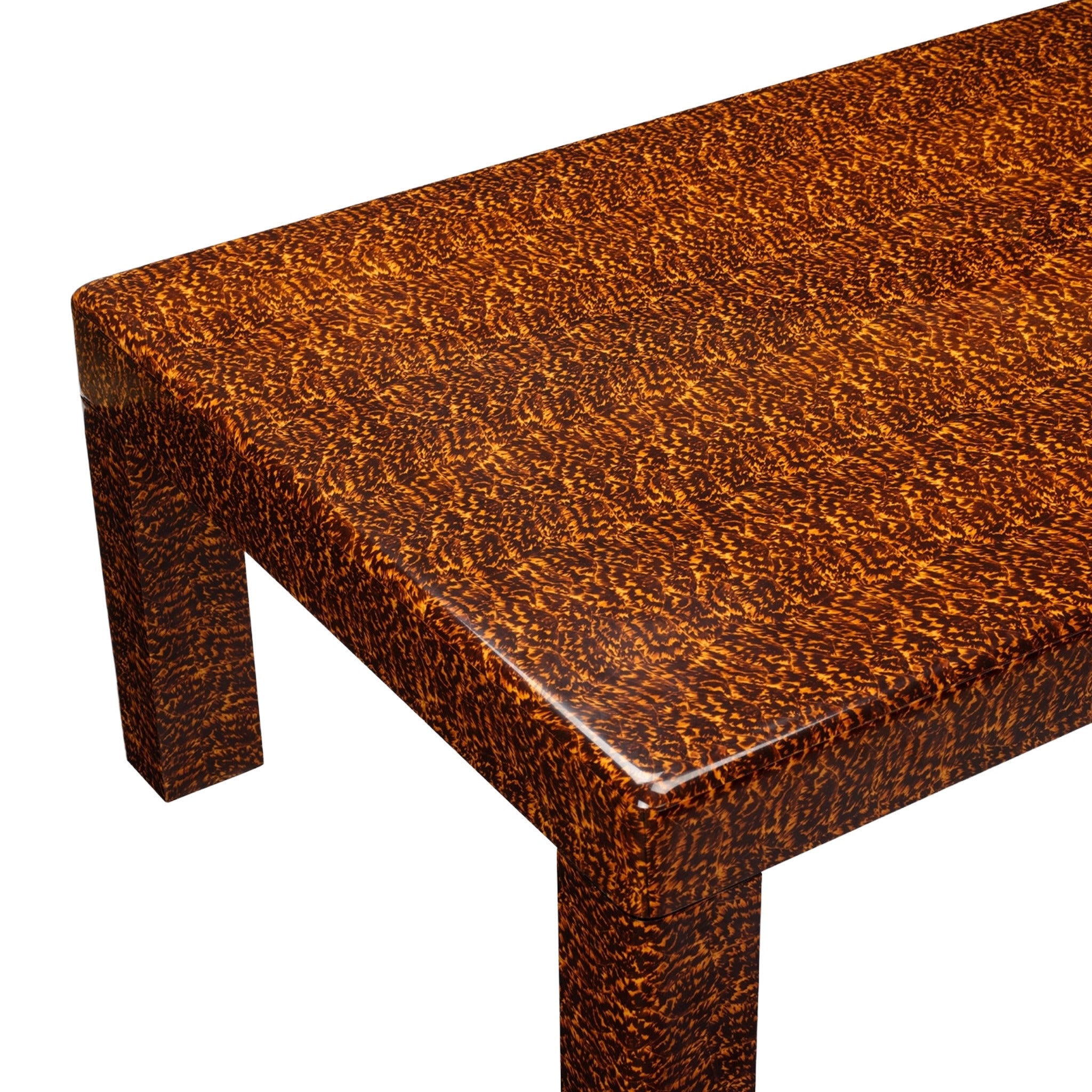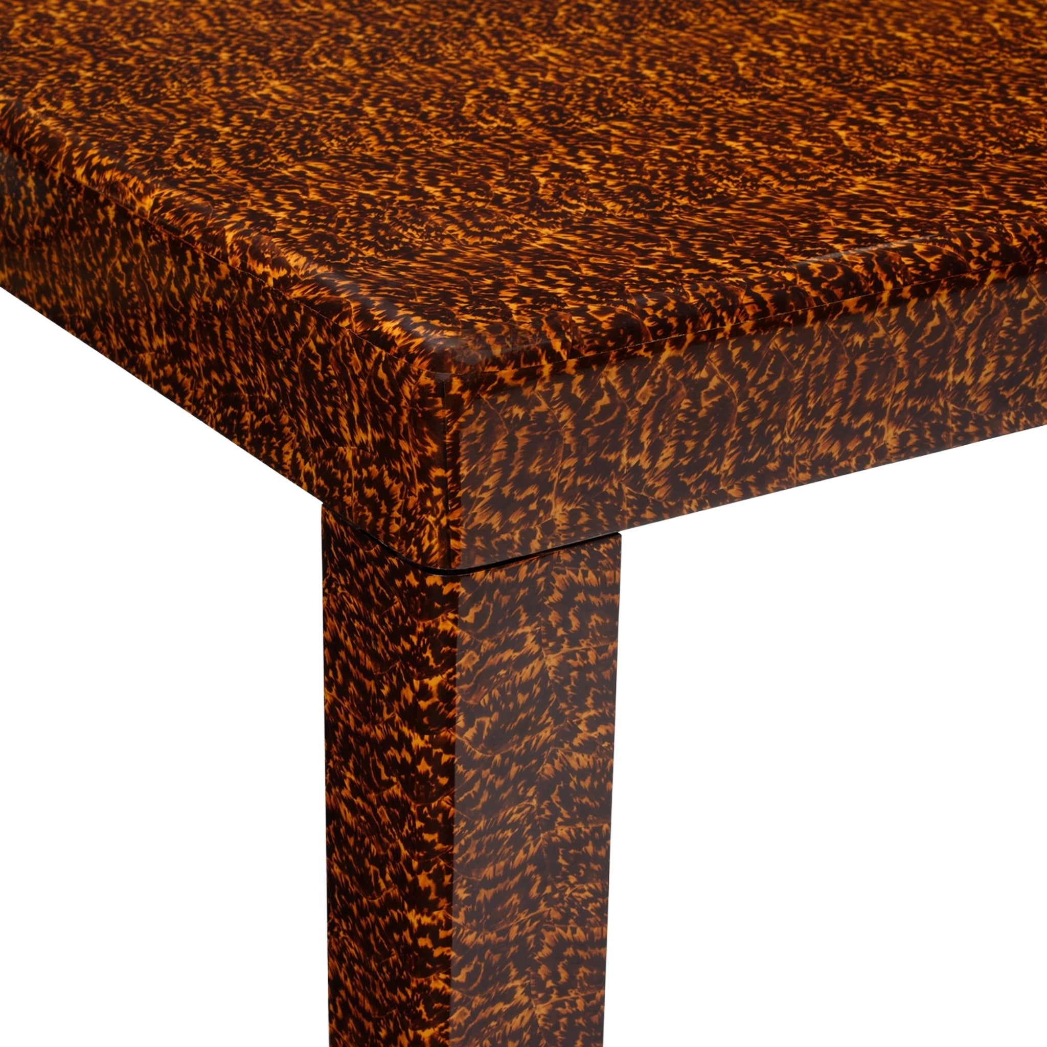 A classic silhouette meets the unmistakable allure of faux tortoiseshell, resulting in a table that feels both familiar and distinctive. Sleek yet substantial, it offers enduring style and effortless versatility for a wide range of interiors.