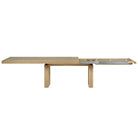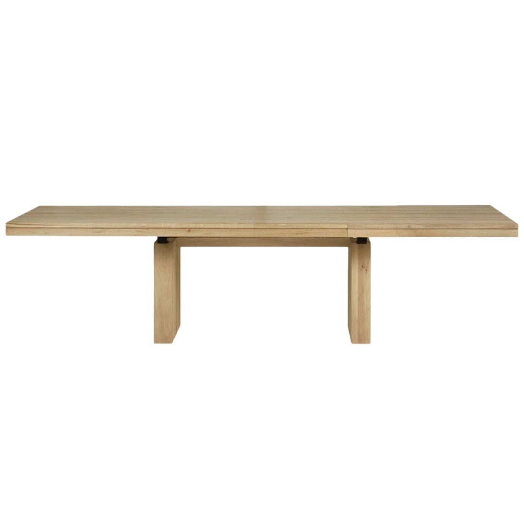 This solid oiled oak double extendable dining table beautifully merges clean lines with a sturdy appearance. Despite its substantial look, it can be effortlessly extended with one hand. In just a few simple steps and moments, it quickly adapts to accommodate whatever your home’s next occasion requires.