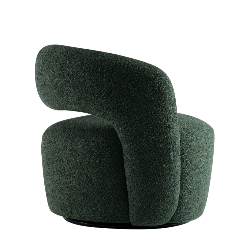 Discover a sense of sophisticated luxury with the sculptural shape of the French Riviera Swivel Chair. This fully upholstered chair offers a fresh take on the traditional lounge chair, enveloping you in comfort while maintaining a clean look with a tight back and seat. The softly upholstered curves and the intricate details create a grandiose feel of modern elegance. We love this swivel as a single accent chair or doubled up with a side table in between. Available in a selection of quality fabrics & leather.