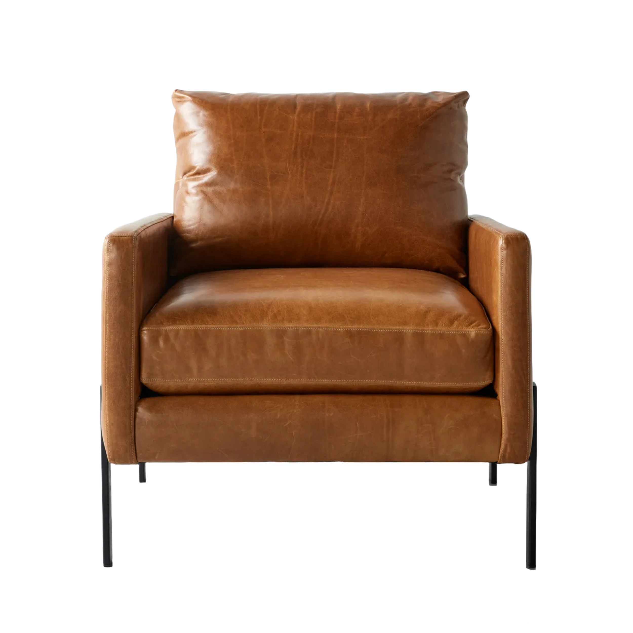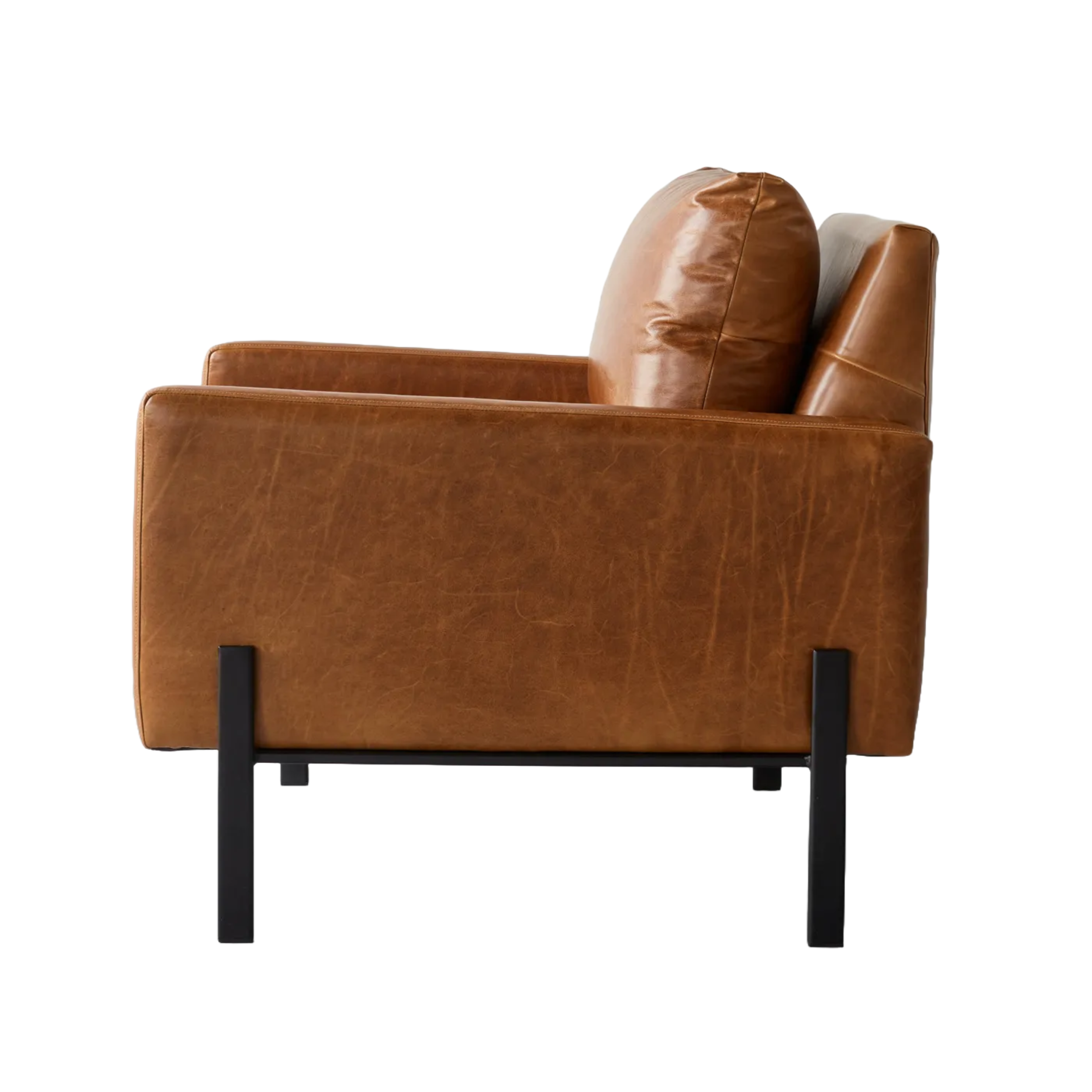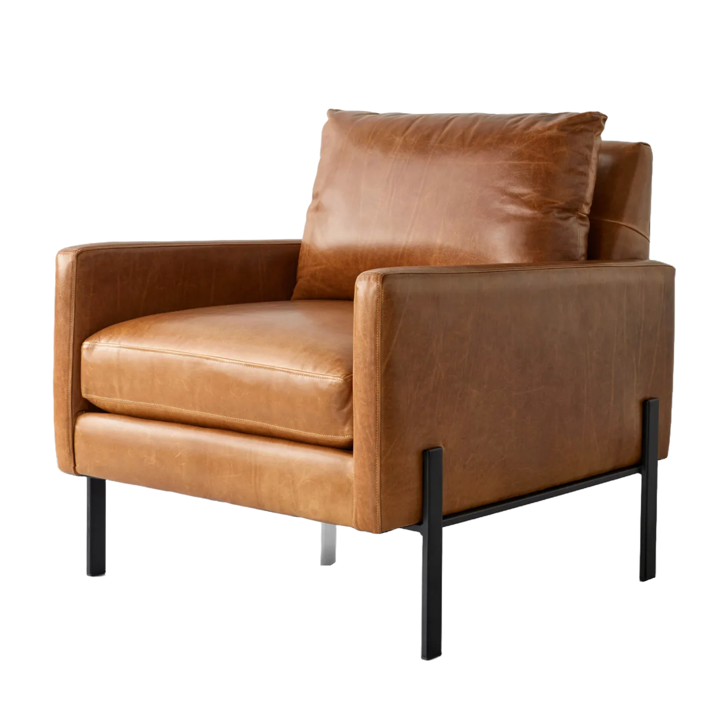 With linear cushions on an architectural metal base, the Santa Monica chair is a striking accent chair for any room in the house. The simple design strikes a perfect balance between sleek and comfortable. Available in a large selection of fabrics and leathers.