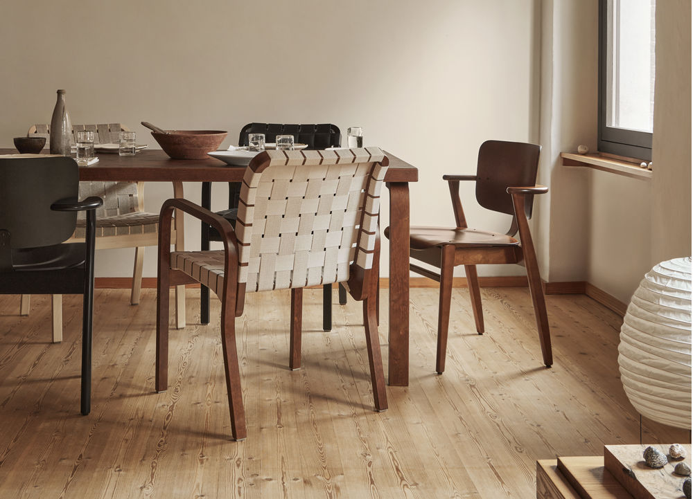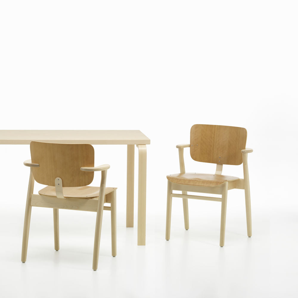 A masterpiece of modern furniture design, the Domus Chair was created as part of a series of furniture for the Domus Academica student housing complex in Helsinki. Comfortable enough to allow sitting for long periods, the Domus Chair achieved great international success, becoming known as “The Finn Chair.” The characteristic short arms mean that the Domus Chair can be pulled close to a table, perfect for studying at a desk and dining while offering the necessary support and comfort. Designed in 1946 by Ilmari Tapiovaara, Domus Chairs have been placed in homes and public spaces worldwide.