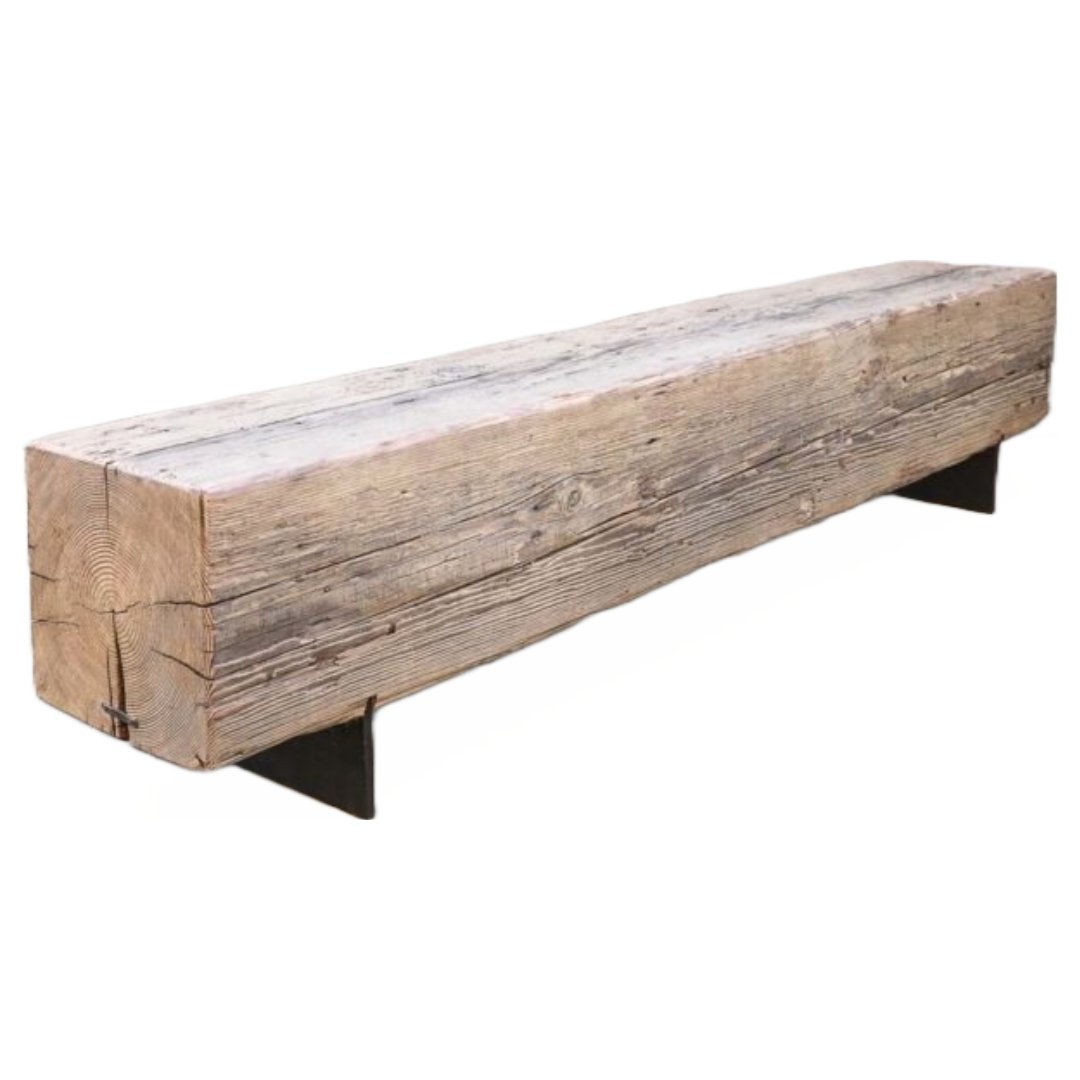 Salvaged pine timber bench constructed with material from dismantled old factory buildings