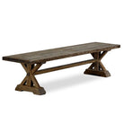 Handcrafted trestle bench built using salvaged pine doors and beams