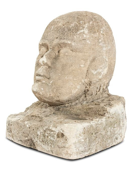 Hand-carved. Granite. Bust found in a garden in Ophain, Belgium. Carving has a great patina, but we don't know a date.